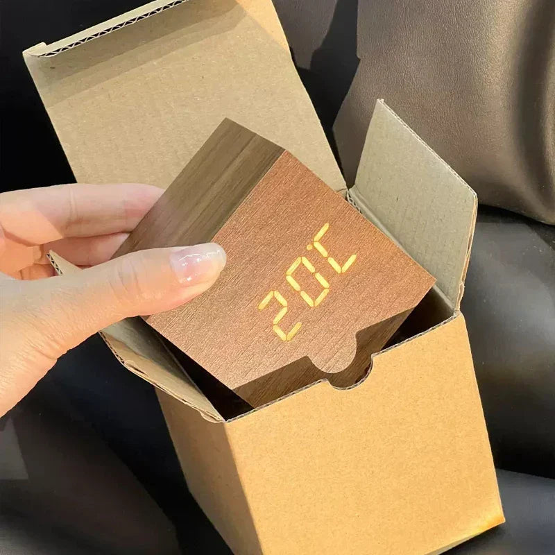 Der hölzerne LED-Uhrwecker kombiniert die natürliche Schönheit von Holz mit innovativen Funktionen, die Ihren Alltag optimieren. Neben der Uhrzeit zeigt dieser Wecker auch die Temperatur an und verfügt über eine nützliche Gerätesteuerung, die es Ihnen erlaubt, das Display mit einem einfachen Klatschen oder Geräusch zu aktivieren. Ideal für Schlafzimmer und Büros – dieser Wecker ist nicht nur funktional, sondern auch ein stilvolles Element für jedes moderne Zuhause.