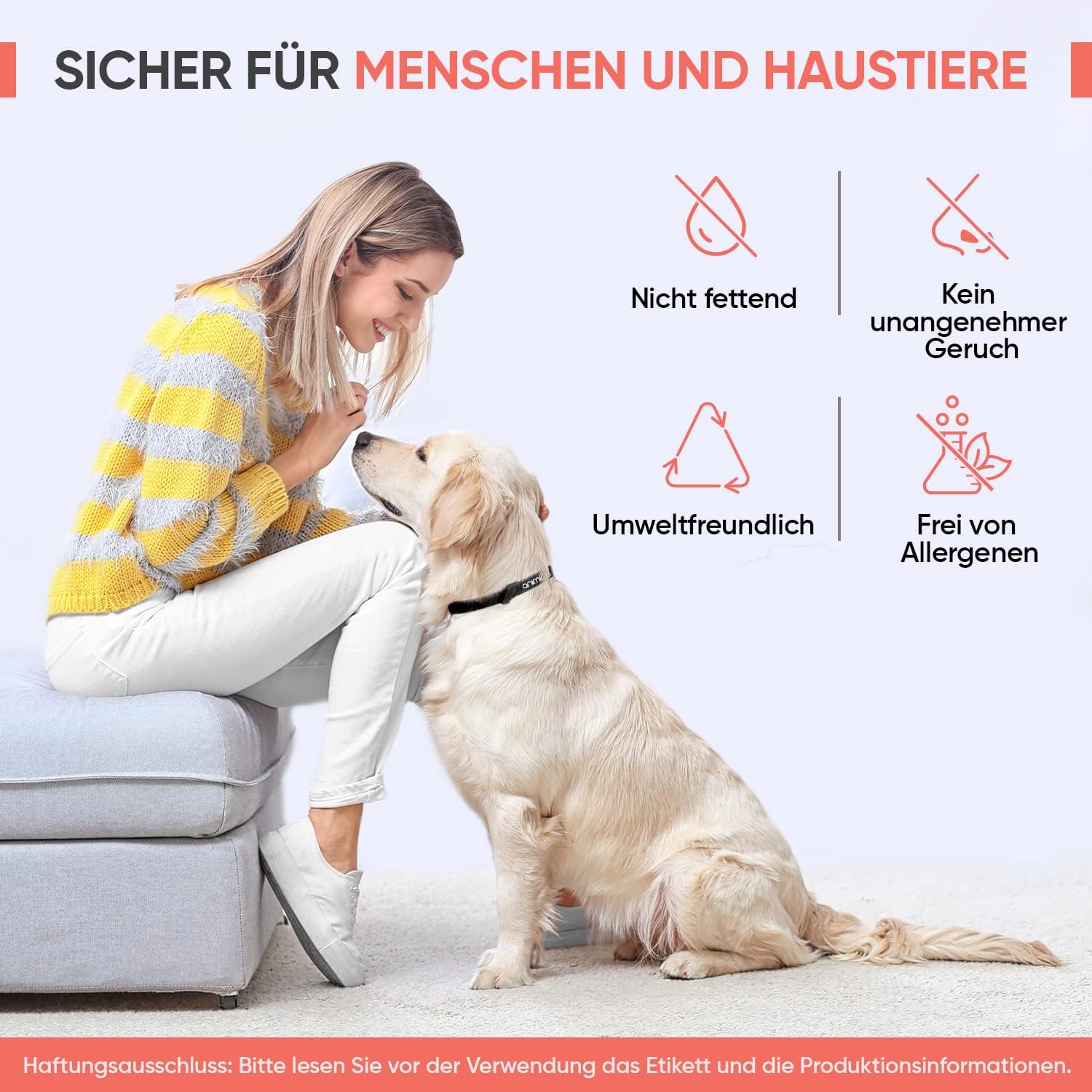 Sanft & Allergiefrei - Unser Halsband besteht aus natürlichen Inhaltsstoffen und ist sanft zur Haut Ihres Hundes. Es verursacht keine Allergien oder Hautreizungen und ist daher ideal für Hunde mit empfindlicher Haut.